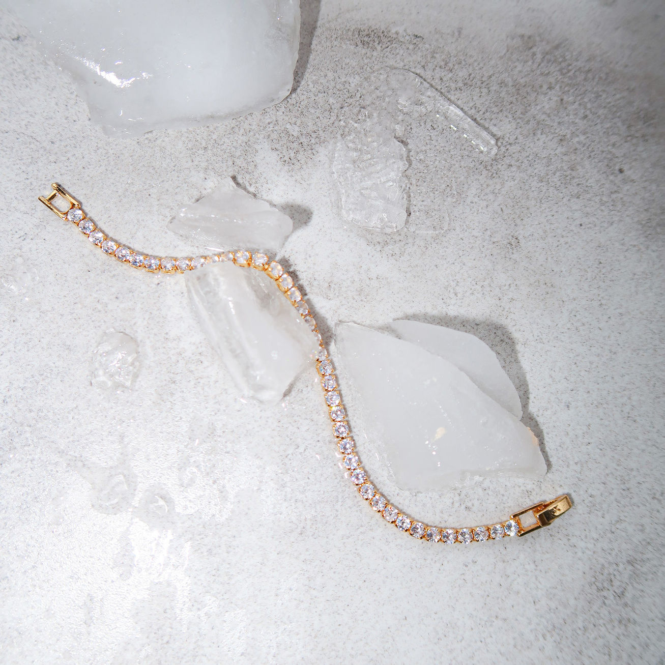 Introducing our Tennis Bracelet: the ultimate everyday sparkle. Delicately crafted with shimmering stones, this timeless piece adds a touch of glamour to your daily ensemble. Effortlessly chic and endlessly versatile, it's the perfect accessory for adding a touch of sparkle to any occasion.