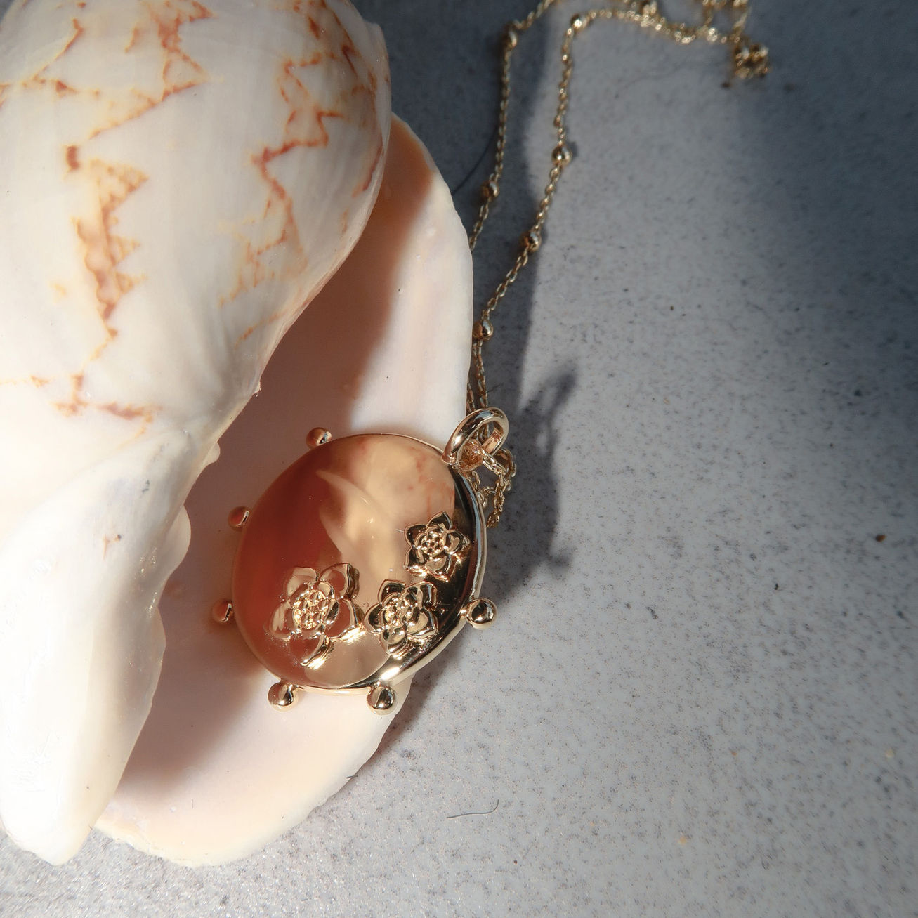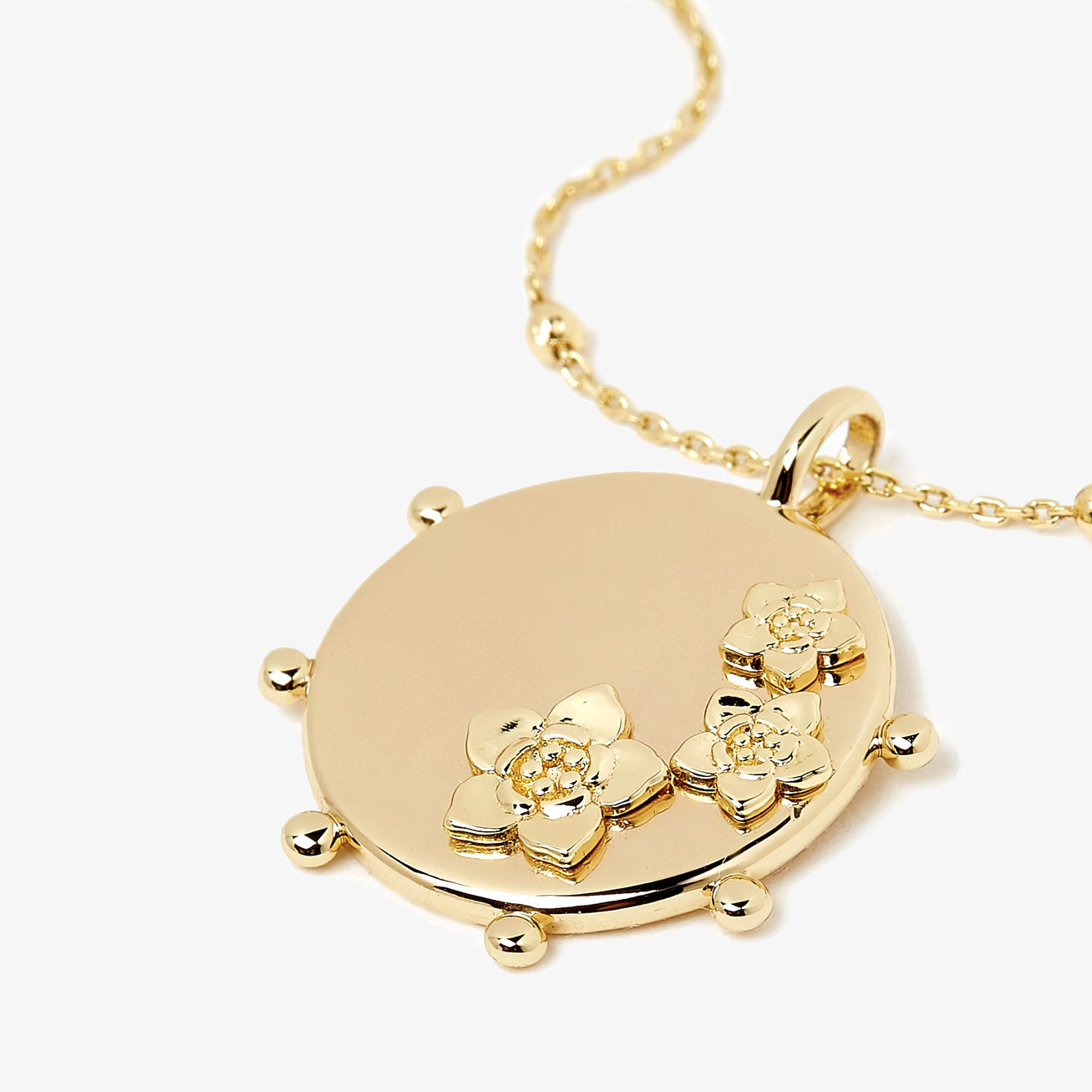 Embrace romance with our exquisite medallion necklace, a captivating addition to our flower collection. Part of the enchanting LuludI Collection, it features delicate flower discs adorning a beautifully beaded chain. This piece exudes an ethereal charm, capturing the essence of timeless beauty and grace. Each intricate detail is a testament to craftsmanship, making it a stunning symbol of elegance and femininity. Elevate your style with this enchanting necklace, designed to add a touch of delicate sophistication to any ensemble.